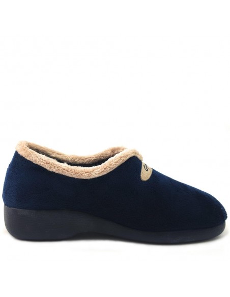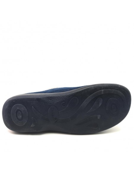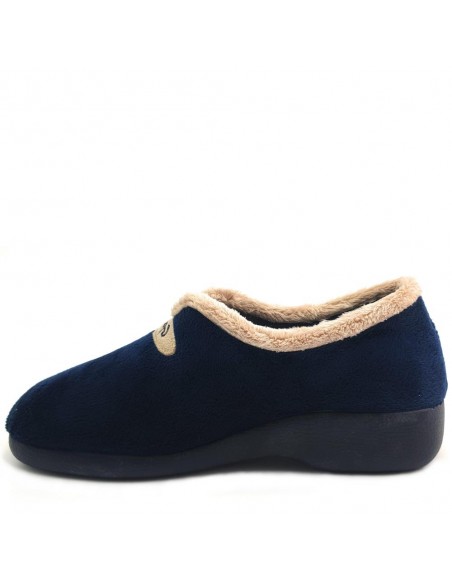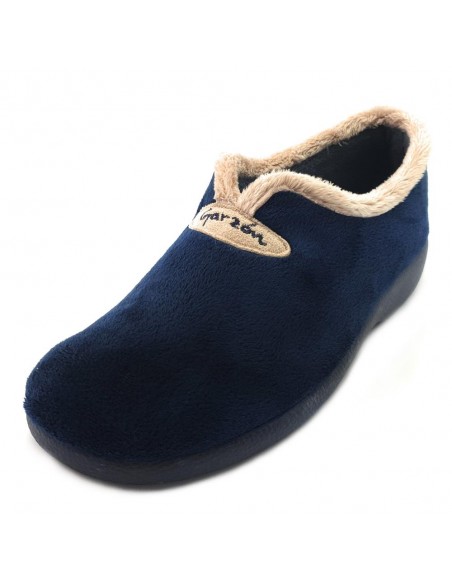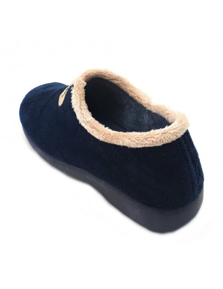 Descripción: Zapatilla cerrada para casa mujer 3921 de Garzon muy caliente y suave para casa en terciopelo azul con detalle cuello pelo beig. Suela de goma con mucha base para una gran estabilidad.