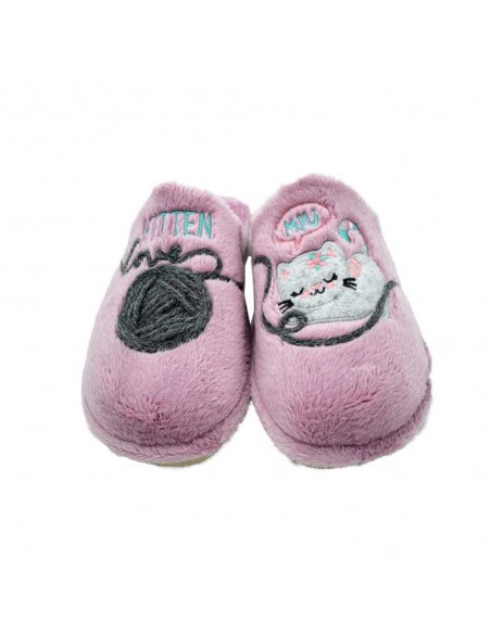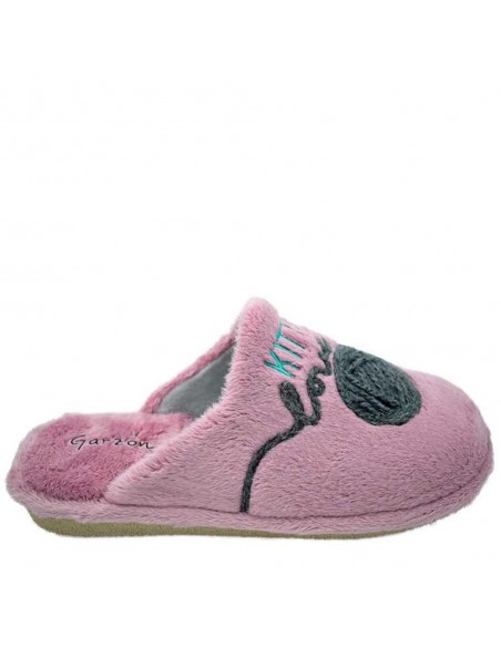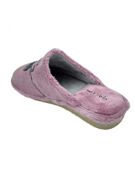 Descripción: Zapatilla mujer para casa 267 GATO de Garzon caliente en suave tejido malva con dibujo gato. Suela de Microporoso especial parquet ligera que no deja marca. Cómoda y duradera. Lavable a 30ºC.