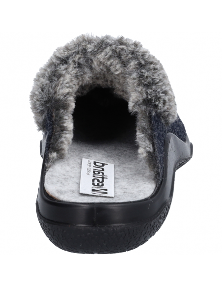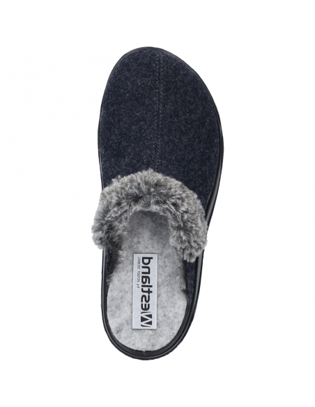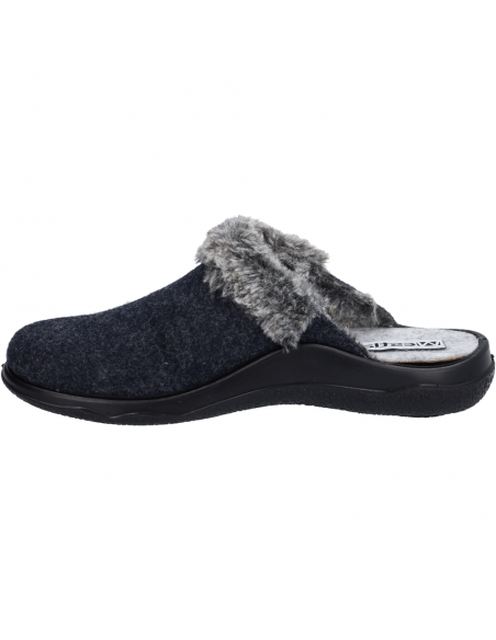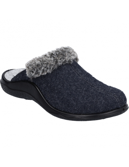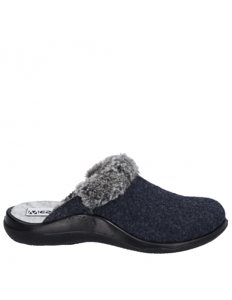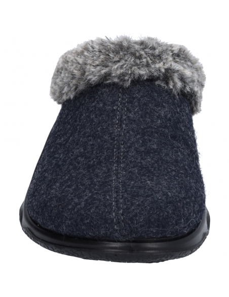 Descripción: Zapatilla de casa para mujer ROUBAIX-03 de Westland en lana natural azul con detalle de pelo. Piso de poliuretano inyecyado flexible y antideslizante. Plantilla ananatómica móvil.