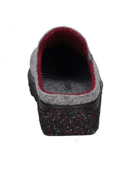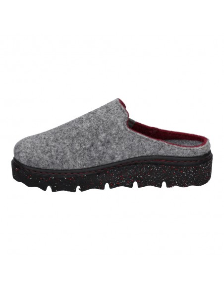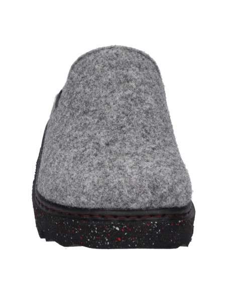 Descripción: Zapatilla de casa para mujer CARMAUX-01 de Westland en lana natural gris. Cuña ligera negra moteada flexible y antideslizante. Plantilla anatómica móvil.