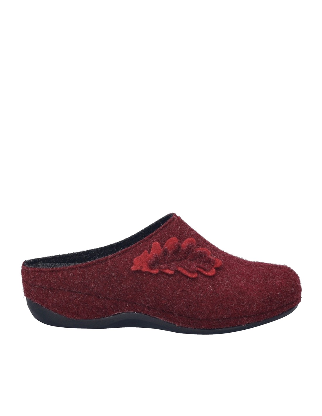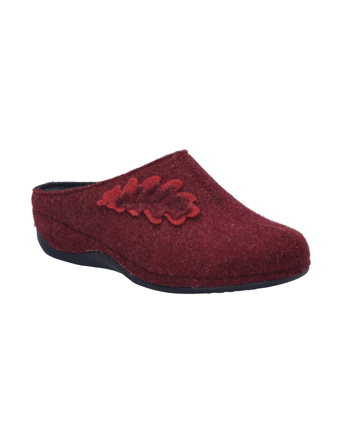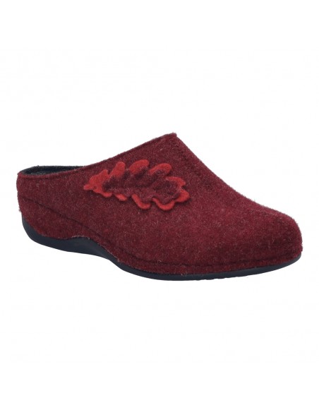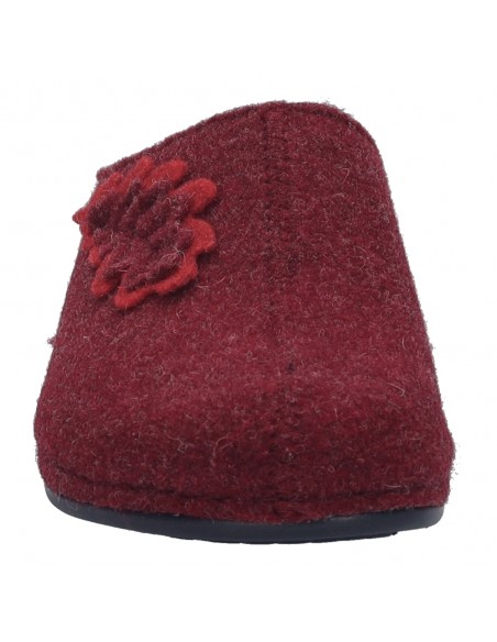 Descripción: Zapatilla de casa para mujer CHOLET-05 de Josef Seibel en lana natural burdeos, detalle floreado y cuña ligera forrada al tono. Piso de goma flexible y antideslizante. Plantilla anatómica móvil.