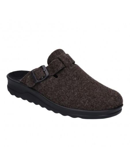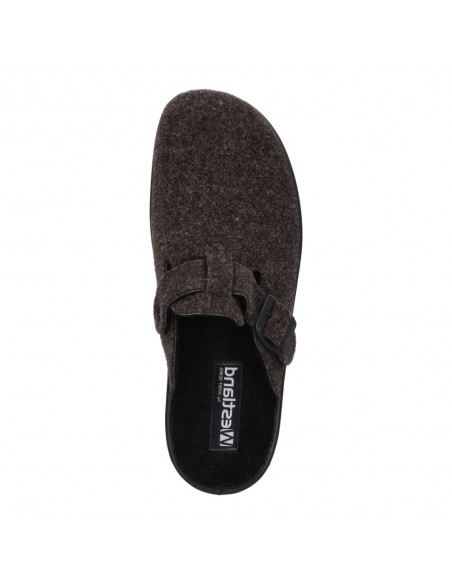 Descripción: Zapatilla de hombre de Westland Metz-240 en lana natural marrón. Ajuste con hebilla. Piso de Poliuretano inyectado ligero, flexible y antideslizante con soprte lateral en la zona del puente.