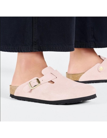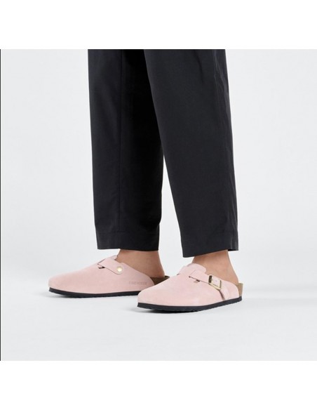 Descripción: Cómodo zueco BIO para mujer de Birkenstock. Clásico modelo BOSTON en suave piel Light Rose. Ancho estrecho. Ajuste con hebilla. Suela con diseño anatómico que se adapta al pie como un guante