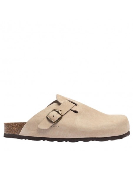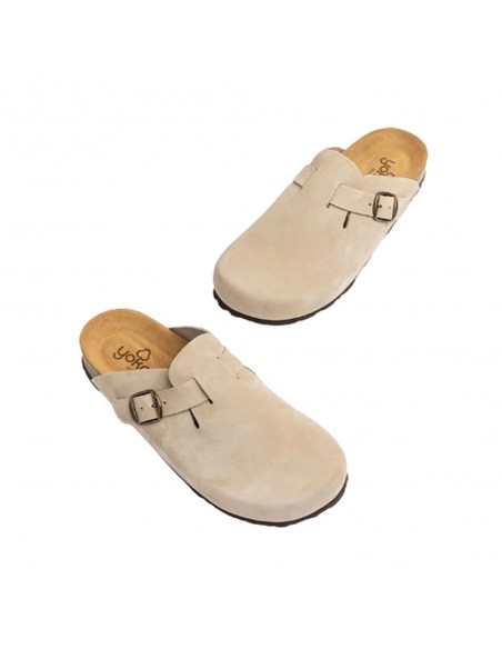 Descripción: Zueco mujer estilo BIO de YOKONO. Fabricación artesana en piel beig con tintes vegetales. Tira con hebilla dorada ajustables. Plantilla en piel acolchada. Cuña plataforma con piso antideslizante.